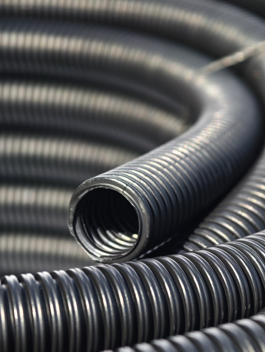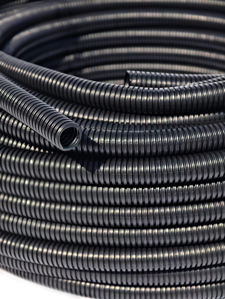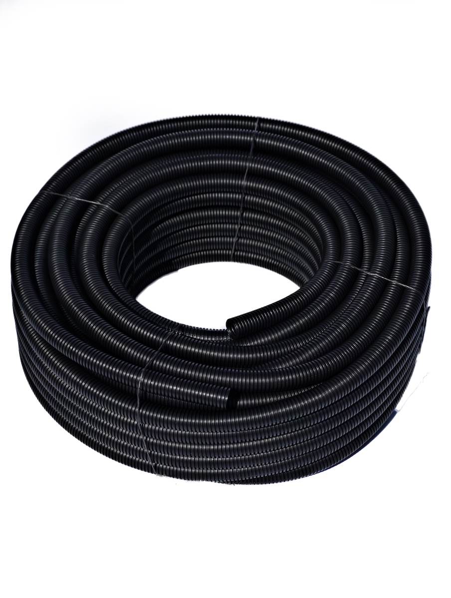 • Un colac de 50 m de tub gofrat negru 750N, HF, stabilizat UV, fără fir, din HDPE, la diametrul exterior selectat din gamă (aprox. 11–50 mm).